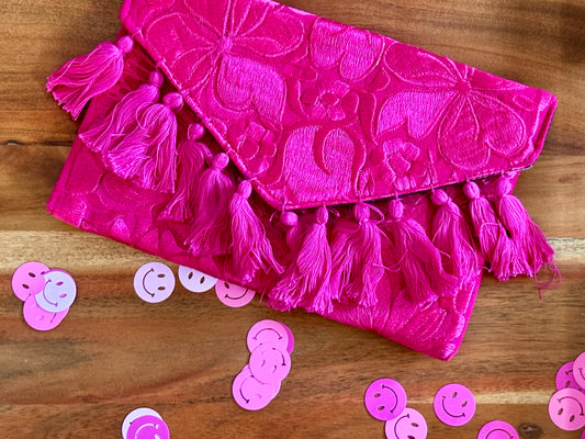Embroidered Tassel Clutch – Turquoise, Hot Pink, Orange