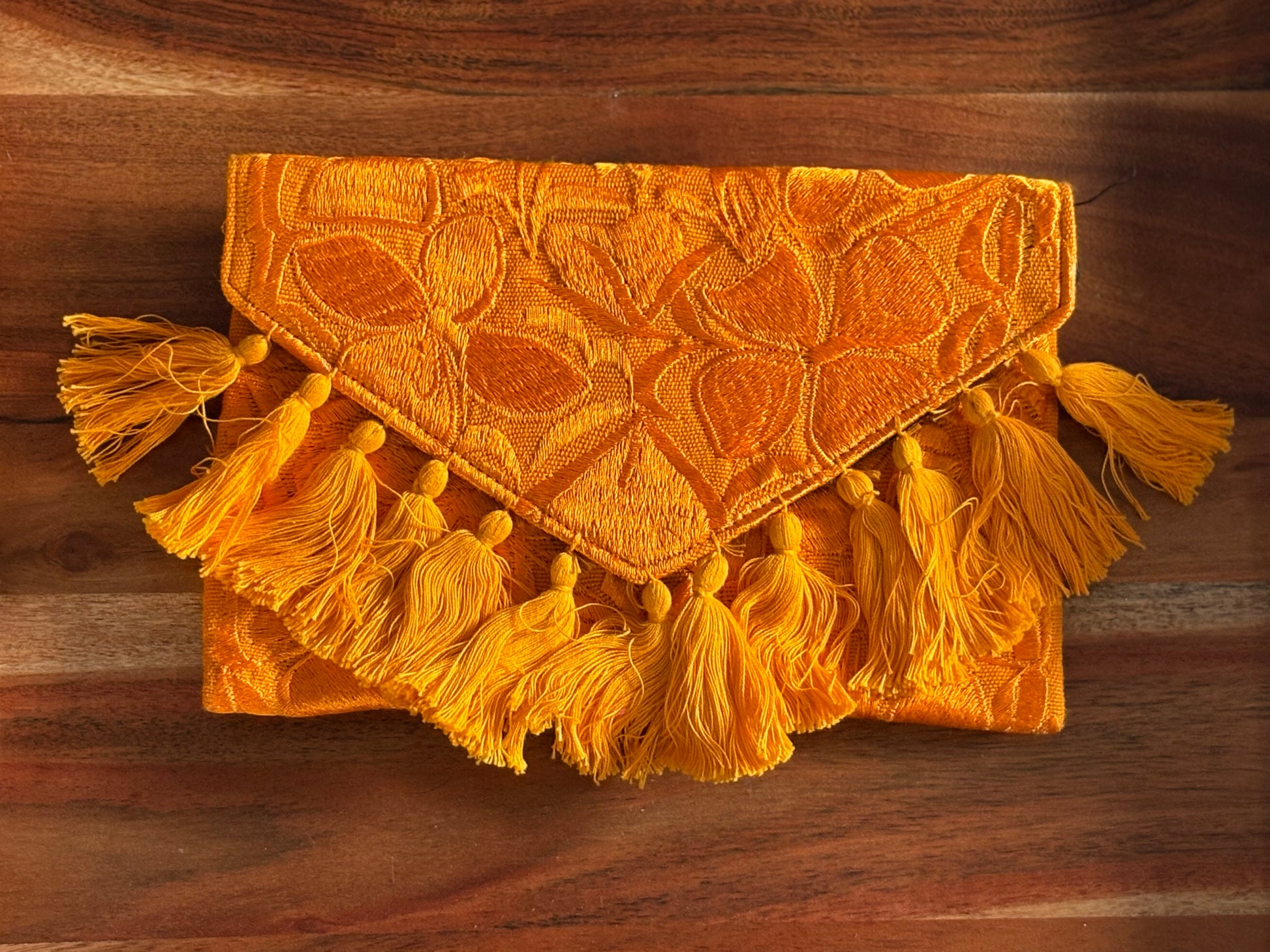 Embroidered Tassel Clutch – Turquoise, Hot Pink, Orange